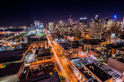 Here's another shot of the New York skyline. This time at night with the busy city traffic lighting up the streets below. This image was taken from the rooftop of hotel Ink 48.
